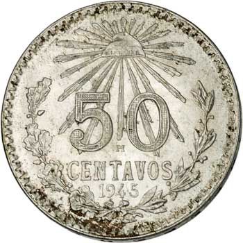 Between 1905 and 1983, Mexico issued nine different 50-centavos coins. The first five were silver, each getting progressively smaller. This is the third issue, containing .1929 ounces of silver.