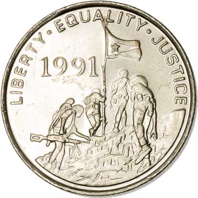 The unit of currency of Eritrea is the Nakfa, and this is a one nakfa coin. It was minted in 1997 only (the 1991 date on the reverse refers to the year the "de facto" state was formed).