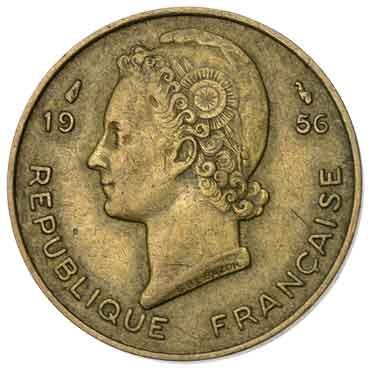 The Rhim Gazelle -- a nomadic antelope -- is a popular reverse on French African coins.