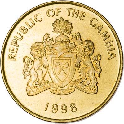 The reverse of this coin first appeared on KM10 (1971 and 1977). It was reissued with the coat of arms obverse one year only (1998).