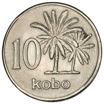 Nigeria adopted the 'naira' as their new currency in 1973, with 100 kobo to the naira. This 10 kobo coin was minted from 1973 to 1990.
