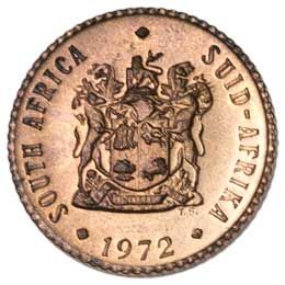 In 1965, the Kruger Gray Cape Sparrows design was replaced with this design by Tommy Sasseen, first on the one cent piece (KM65), then on this half-cent coin. Unlike the one cent issue which had two versions, this issue features a bilingual obverse (English and Afrikaans).
