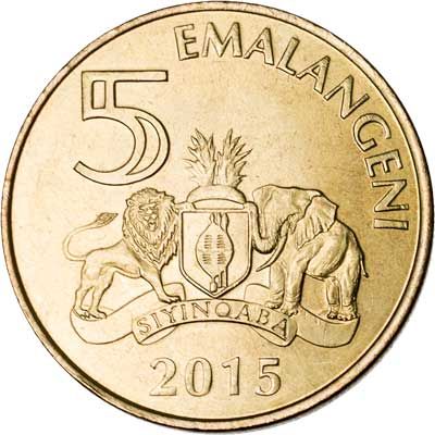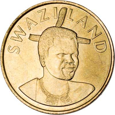 Swaziland is a monarchy, and the arms of His Majesty the King with a lion and elephant appear on many Swaziland coins.
