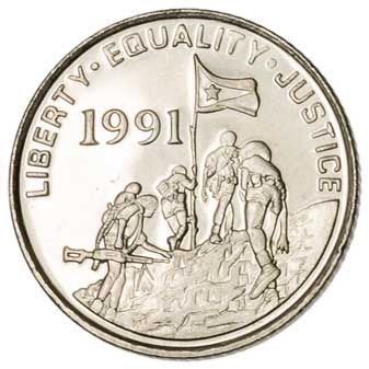 This coin was minted in 1997 only. The 1991 date on the reverse refers to the year the "de facto" state was formed.
