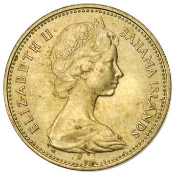 The Starfish has appeared on the Bahamian 1-cent coin from the beginning of the Bahama's own coinage in 1966. (Before then, Bahamians used the coins of Great Britain.) This is an example of the first type issued from 1966 to 1969.