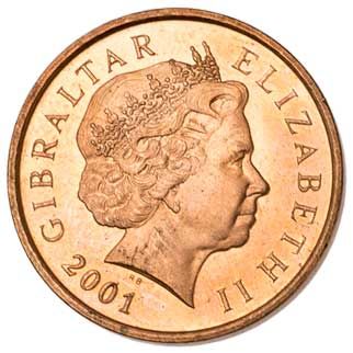 Gibraltar's Barbary partridge first appeared on the one penny coin in 1988 (KM20) and this version (with a different obverse portrait) was minted from 1998 to 2003.
