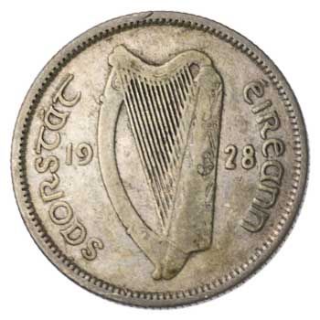 This is the original shilling -- minted between 1928 and 1937 -- that was part of the first coinage of the Irish Free State. The bull design was continued with a modified obverse in 1939 (KM14), followed by a copper-nickel version (KM14a) struck from 1951 to 1968.