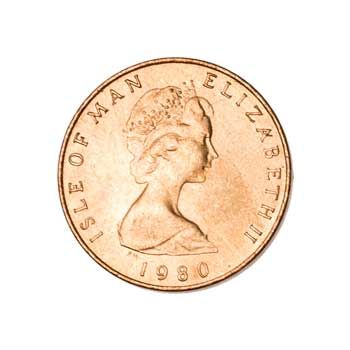 In 1980, the previous herring half-penny was replaced with this more stylized design. The Celtic-looking portion of the design probably represents fishing nets. This coin was minted until 1983.
