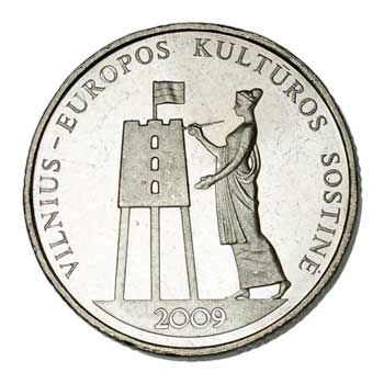 The reverse of this coin features Vilnius as the European Culture Capital for 2009.