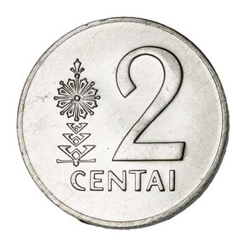 Originally, the plural of centas was centai (seen here and on the 5-centai coin). The higher denominations used 'centu'. This coin was issued one year only.