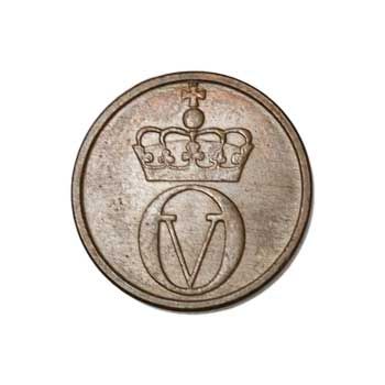 A little squirrel holding what looks like a small pine cone. Easily one of the cutest coins I have seen, although I am unsure of the significance of the squirrel. This coin was minted from 1958 to 1972, when 1-øre coins were discontinued.
