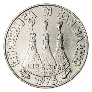 I was unable to find any references to the animal portrayed on San Marino's 1975 10-lire coin. So I had to do it the hard(er) way, and have tentatively concluded that the coin shows a pair of Alpine Marmots.