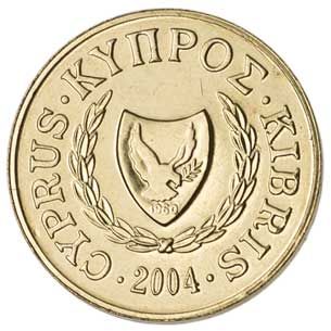 Cyprus' 2-cent coin features two goats in a heraldic arrangement taken from a pottery bowl from the mid-thirteenth century BCE.