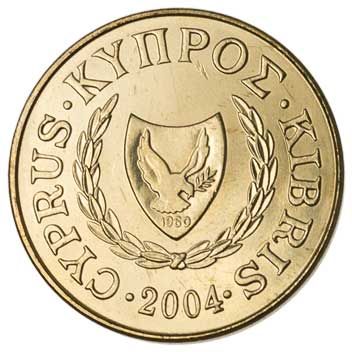 Cyprus' 5-cent coin features a stylized bull's head, or perhaps it is a sacred bull mask. In ancient times, bull masks made from real bull skulls were worn in rites, and neolithic bull-horned stone altars have been found in Cyprus.