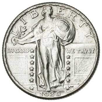The 'Standing Liberty Quarter' was first issued in 1916 (KM141) probably to an uproar, since the design had Liberty's right breast exposed. The wardrobe "malfunction" was corrected in mid-1917.