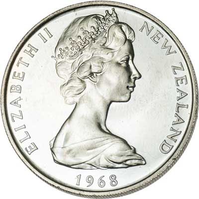 New Zealand switched to decimal coinage in 1967, and this is the first 20-cent coin issued. In 1986, the obverse was changed (KM62), and in 1991 the Kiwi jumped over to the new $1 coin.