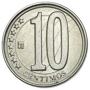 The 10 centimos coin from the previous monetary period (the Bolivar, 1879-2007) was 21 mm. This new coin is smaller, and was minted in 2007, 2009, and 2012.