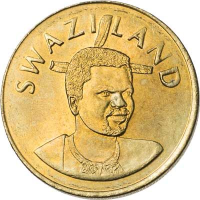 Swaziland is a monarchy, and the arms of His Majesty the King with a lion and elephant appear on many Swaziland coins.
