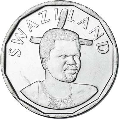 Swaziland is a monarchy, and the arms of His Majesty the King with a lion and elephant appear on many of their coins.