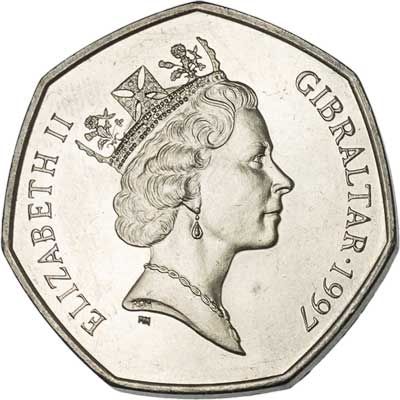 This interesting 7-sided coin was minted from 1990 to 1997 (and 1998 to 2003 as KM778 with a different obverse). Each side is equilaterally curved, meaning the radius of the curve is centred on the opposite point. The result is a coin that can roll relatively smoothly on its edge, despite being 7-sided.
