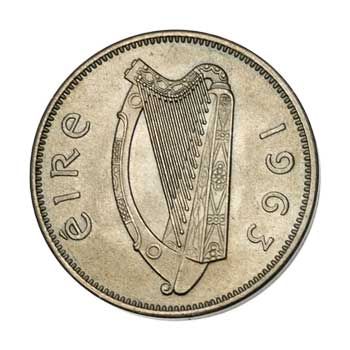 All sources identify this dog as an Irish wolfhound, which makes sense since this breed in Ireland dates back to the Celts in the 1st century BCE. However, the fellow who posed for this coin must have been shaved, since Irish Wolfhounds have long hair.