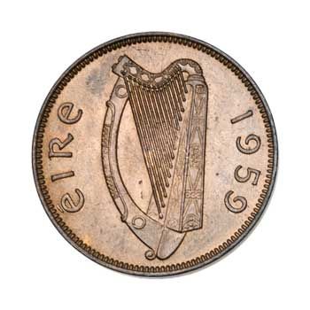 The farthing features the Woodcock, a small bird that was an important game bird that could provide a meal to poor agricultural labourers. This design appeared on the first coinage of the Irish Free State in 1928 (KM1), and was carried over with a modified obverse on this issue from 1939 to 1966.